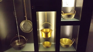 Em exposição encontram-se alguns artefactos utilizados nesta área....com o "imaginómetro" ligado, fiquei a equacionar como seria o ambiente nas cozinhas dos conventos. Fogueiras acesas...imensos tachos ao lume....os aprendizes a esfregar e a untar tachos....um corropio!!!